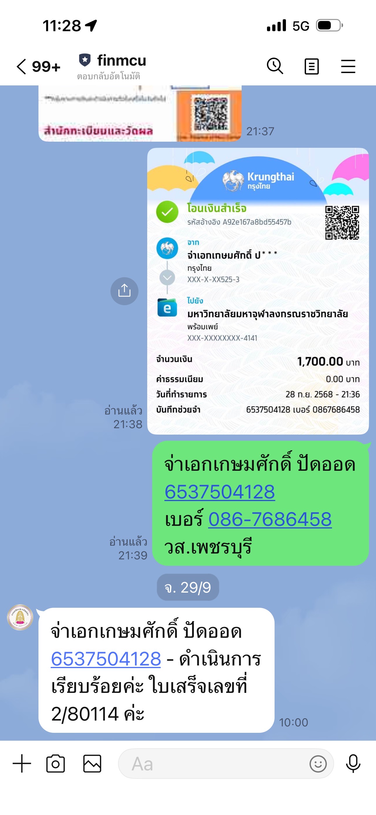 * เข้าพิธีประสาทปริญญาวันที่ 6 ธันวาคม 2568