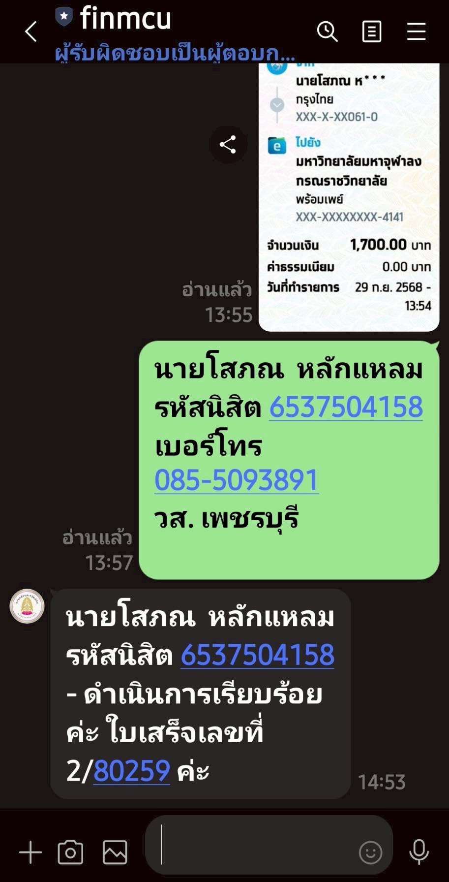 | รหัสนิสิต : 6537504158 | ชื่อ : นายโสภณ | ฉายา: - | นามสกุล: หลักแหลม |