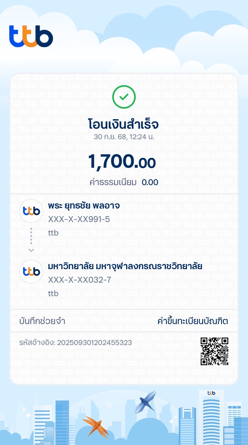 * เข้าพิธีประสาทปริญญาวันที่ 6 ธันวาคม 2568