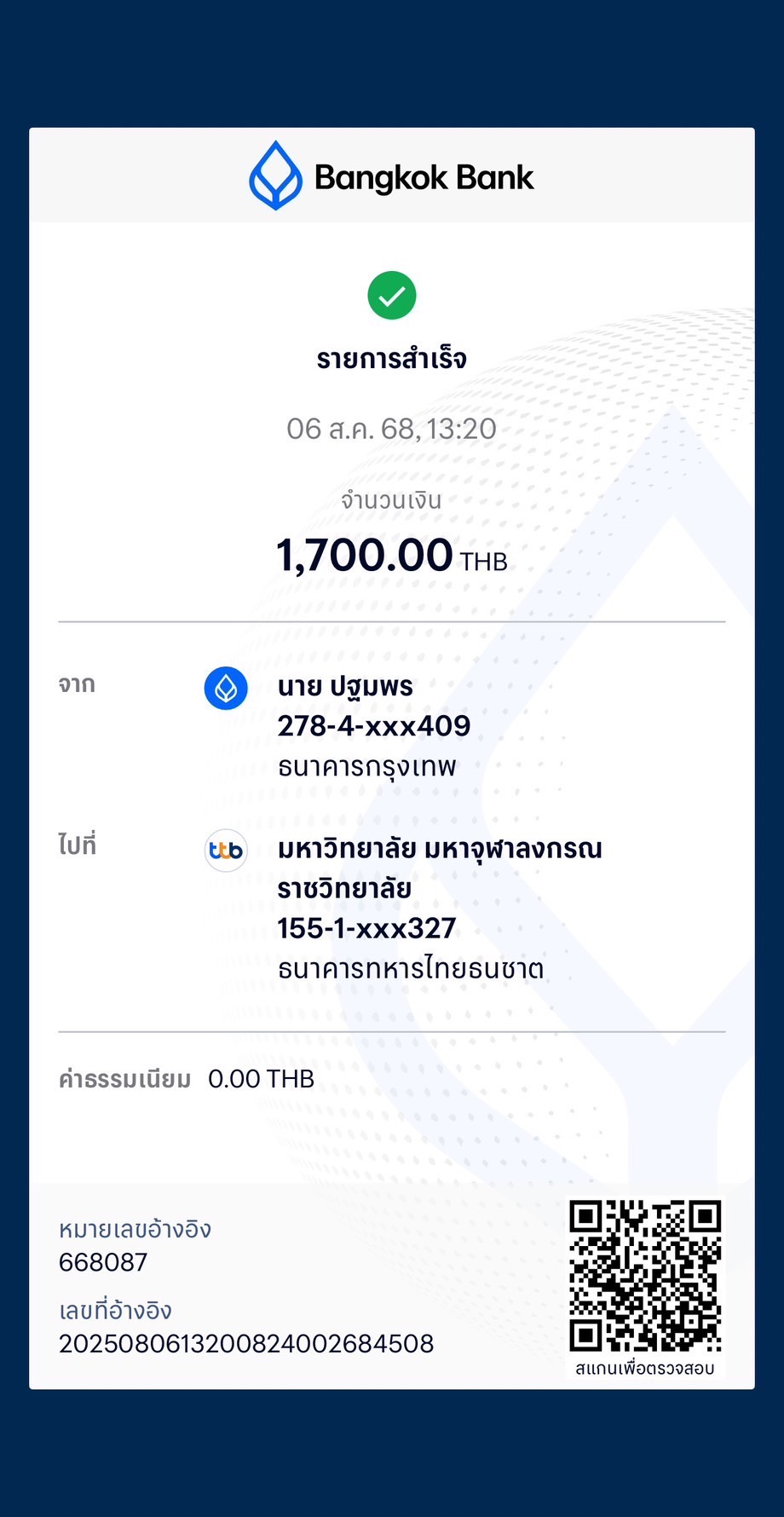 ใบเสร็จรับเงิน/เอกสารยืนยันการชำระเงิน(แนบเอกสาร)