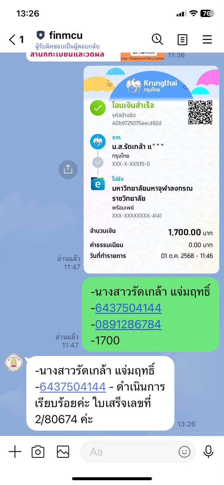 | รหัสนิสิต : 6437504144 | ชื่อ : นางสาวรัดเกล้า | ฉายา: - | นามสกุล: แจ่มฤทธิ์ |