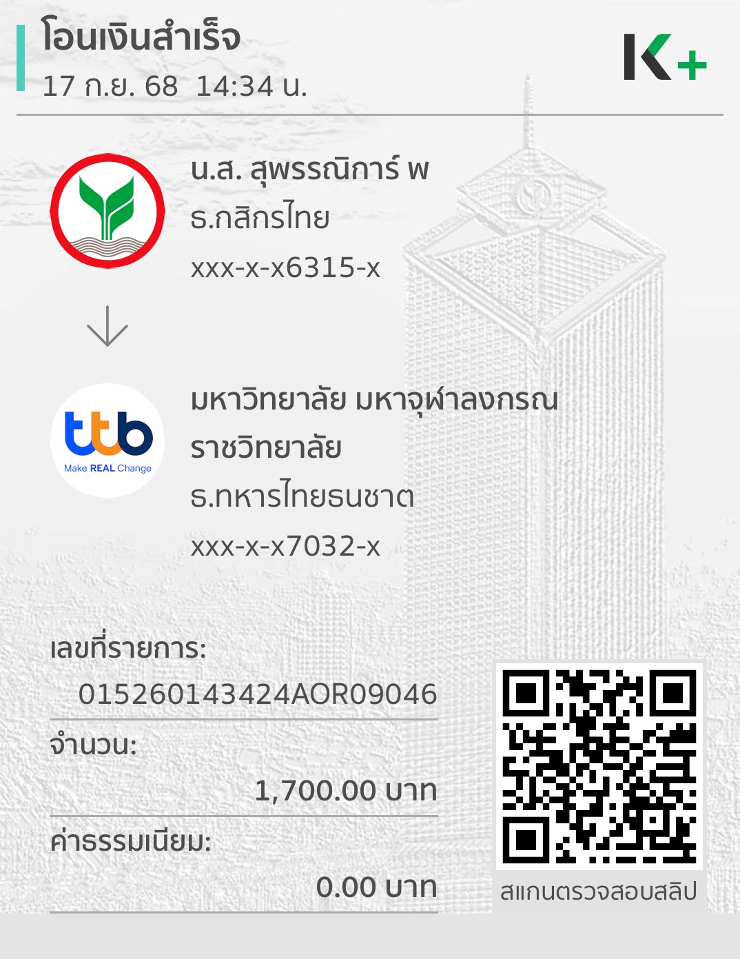 QR Code สำหรับสแกนเข้าร่วมพิธี * เข้าพิธีประสาทปริญญาวันที่ 6 ธันวาคม 2568 |