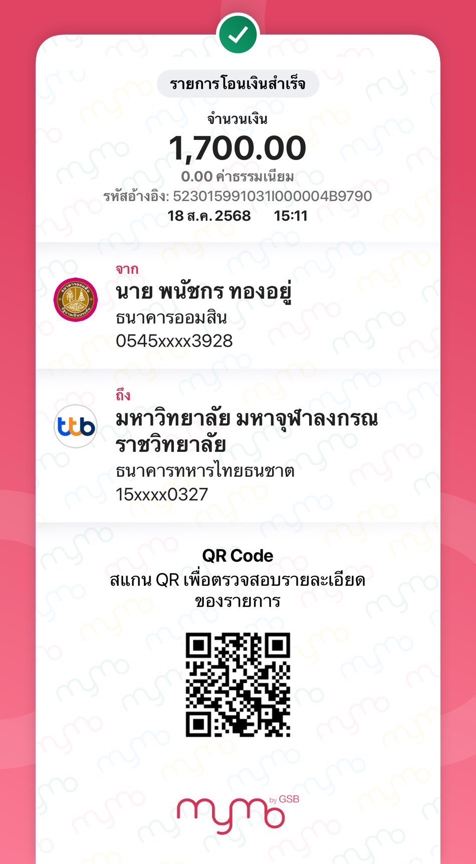 QR Code สำหรับสแกนเข้าร่วมพิธี * เข้าพิธีประสาทปริญญาวันที่ 6 ธันวาคม 2568 |