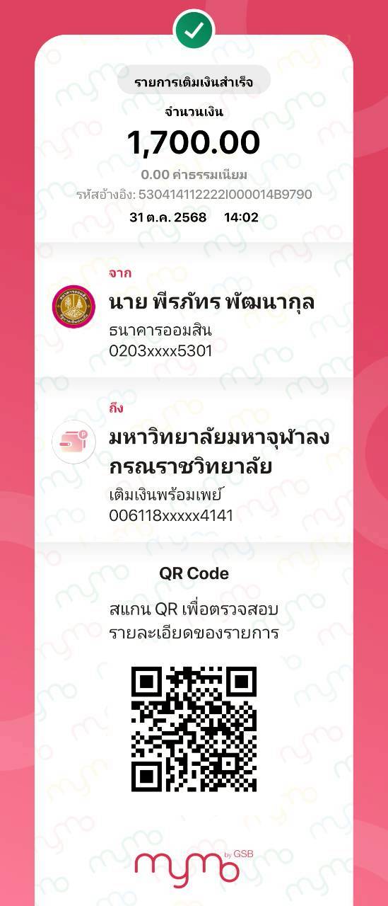 QR Code สำหรับสแกนเข้าร่วมพิธี * เข้าพิธีประสาทปริญญาวันที่ 6 ธันวาคม 2568 |