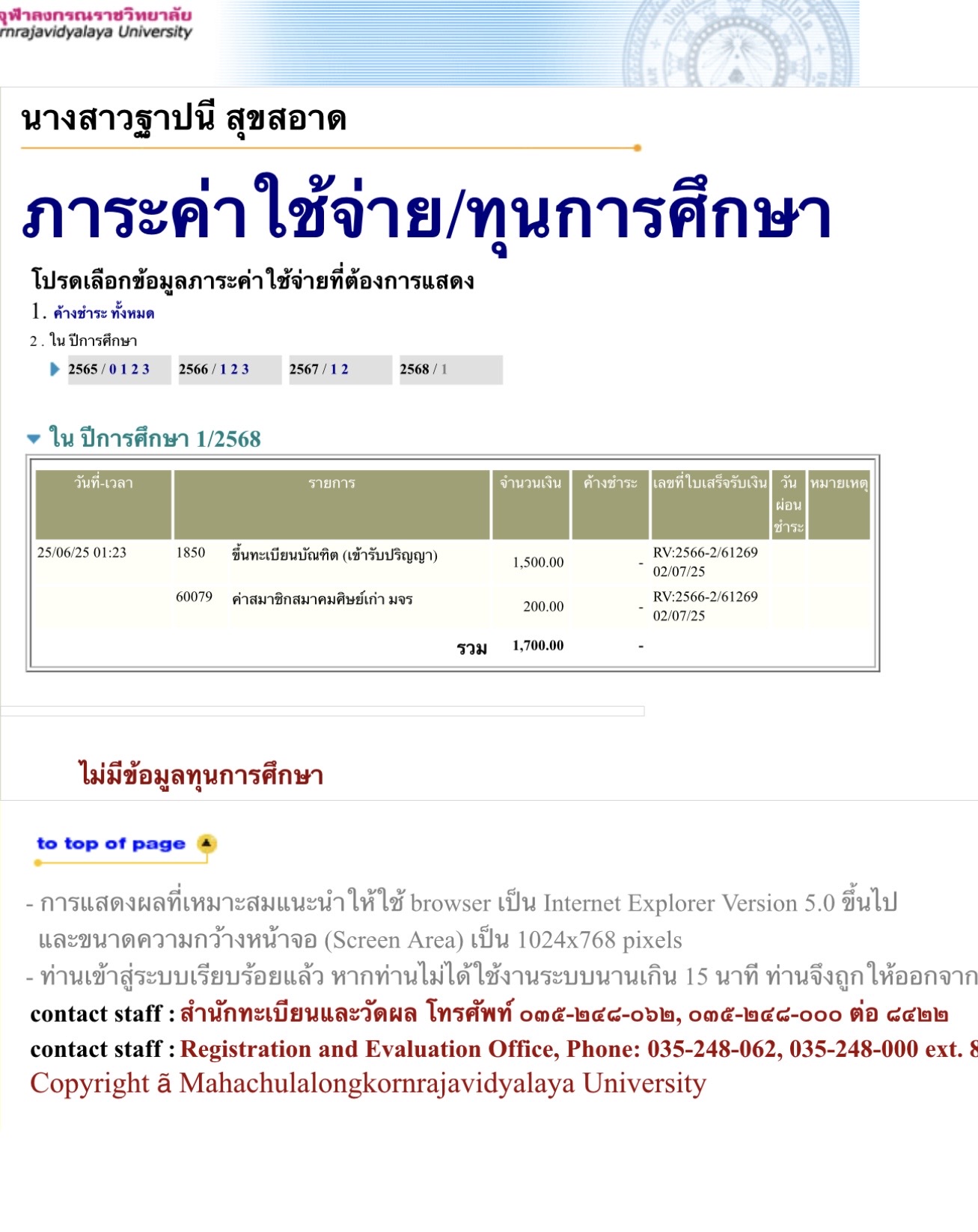 | สถานะเข้าพิธีประสาทปริญญา : คฤหัสถ์ | ระดับ : ปริญญาตรี | สังกัดคณะ: คณะสังคมศาสตร์ | สาขาวิชา: รัฐศาสตรบัณฑิต |
