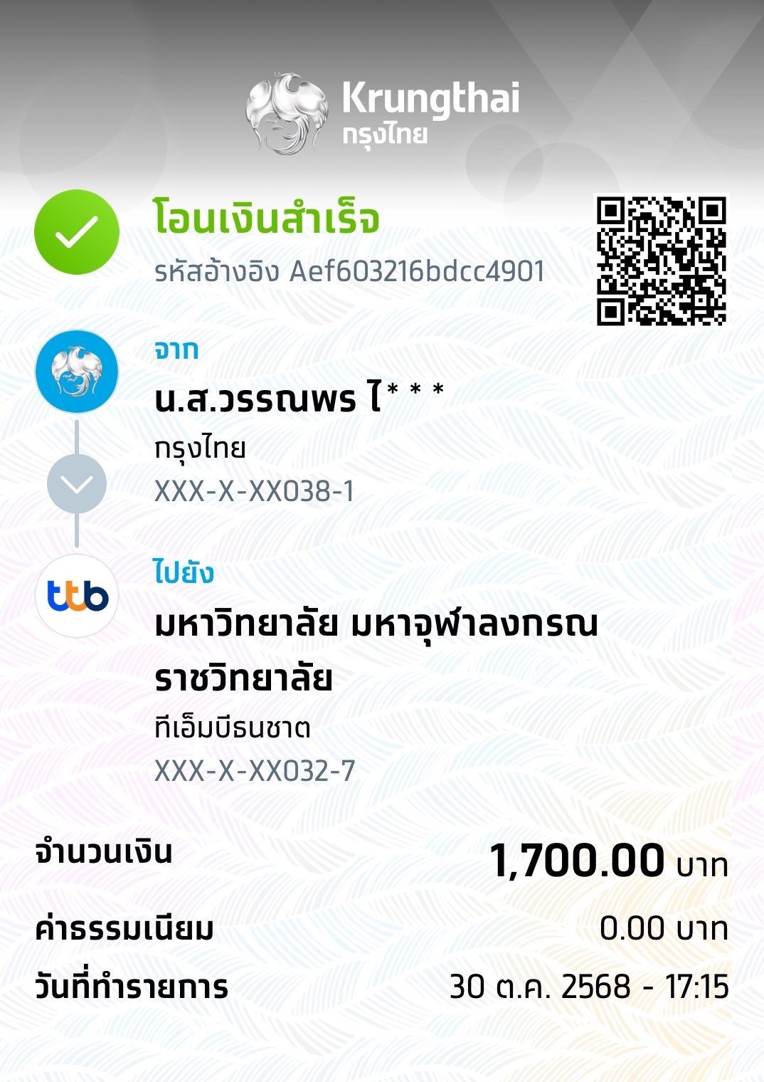 * เข้าพิธีประสาทปริญญาวันที่ 6 ธันวาคม 2568
