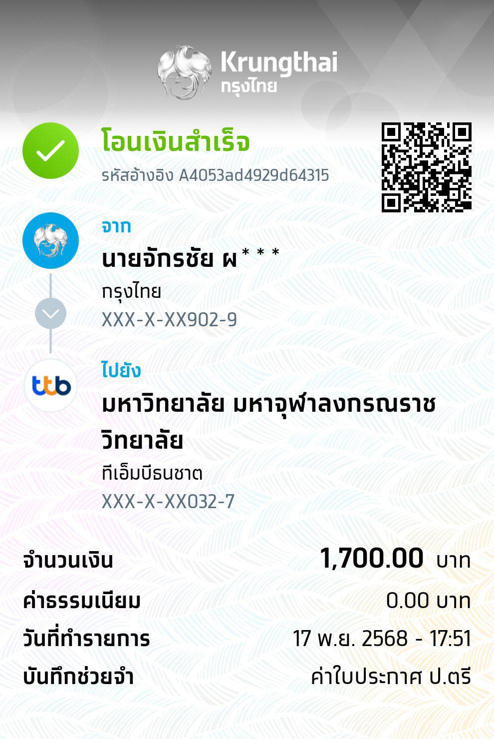 QR Code สำหรับสแกนเข้าร่วมพิธี * เข้าพิธีประสาทปริญญาวันที่ 6 ธันวาคม 2568 |