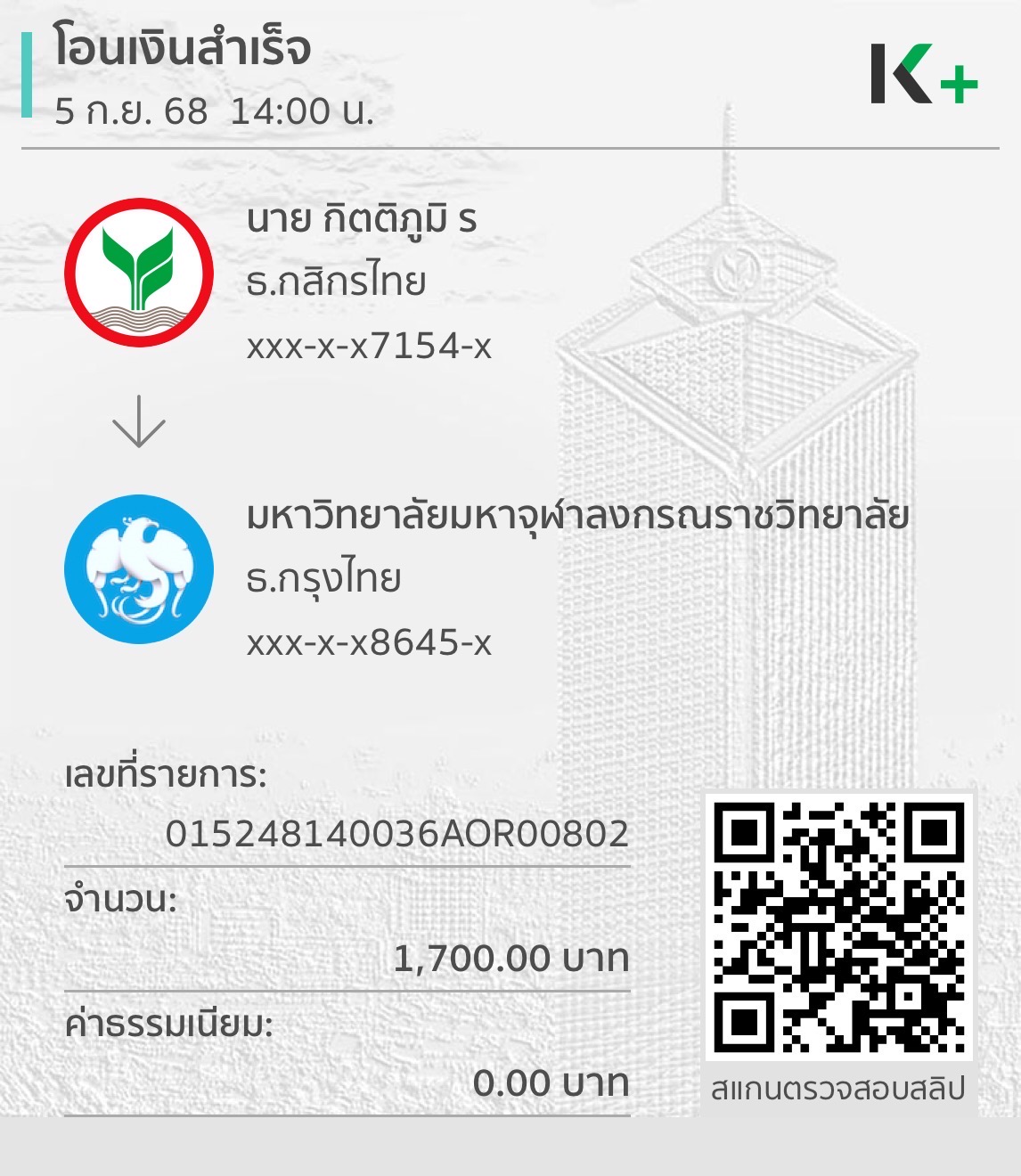 ใบเสร็จรับเงิน/เอกสารยืนยันการชำระเงิน(แนบเอกสาร)