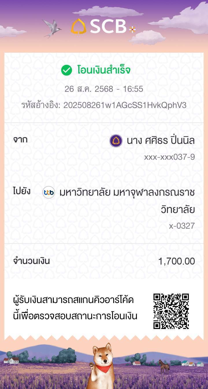 ใบเสร็จรับเงิน/เอกสารยืนยันการชำระเงิน(แนบเอกสาร)
