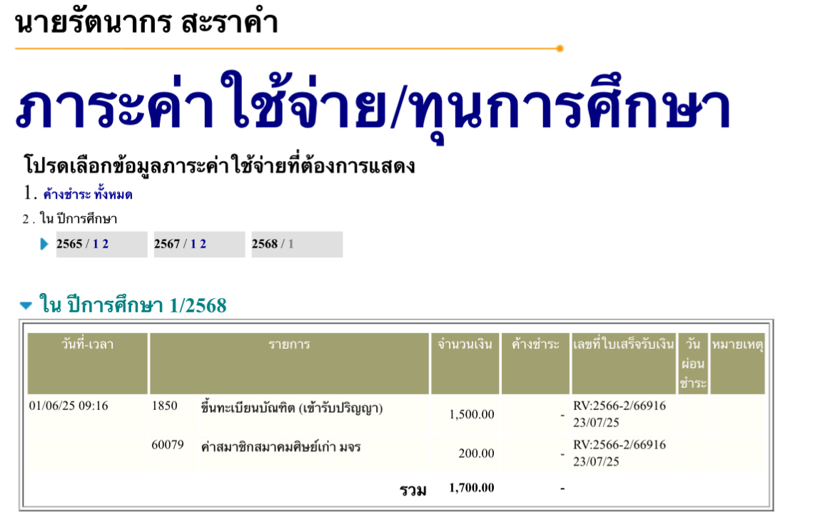 สถานะเข้าพิธีประสาทปริญญา : คฤหัสถ์ ระดับ : ปริญญาตรี สังกัดคณะ: คณะสังคมศาสตร์ สาขาวิชา: รัฐประศาสนศาสตรบัณฑิต
