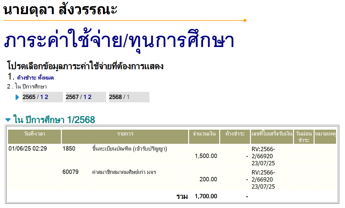 | สถานะเข้าพิธีประสาทปริญญา : คฤหัสถ์ | ระดับ : ปริญญาตรี | สังกัดคณะ: คณะสังคมศาสตร์ | สาขาวิชา: รัฐประศาสนศาสตรบัณฑิต |