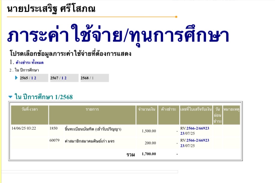 สถานะเข้าพิธีประสาทปริญญา : คฤหัสถ์ ระดับ : ปริญญาตรี สังกัดคณะ: คณะสังคมศาสตร์ สาขาวิชา: รัฐประศาสนศาสตรบัณฑิต