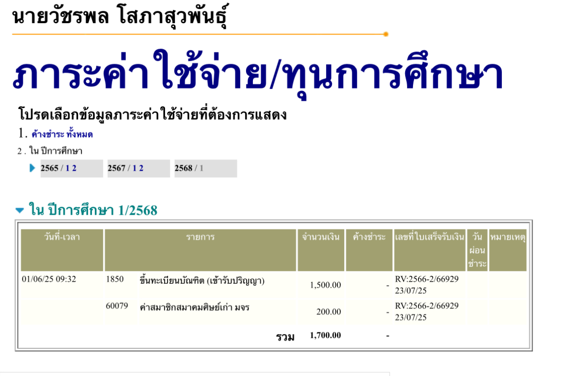 ใบเสร็จรับเงิน/เอกสารยืนยันการชำระเงิน(แนบเอกสาร)