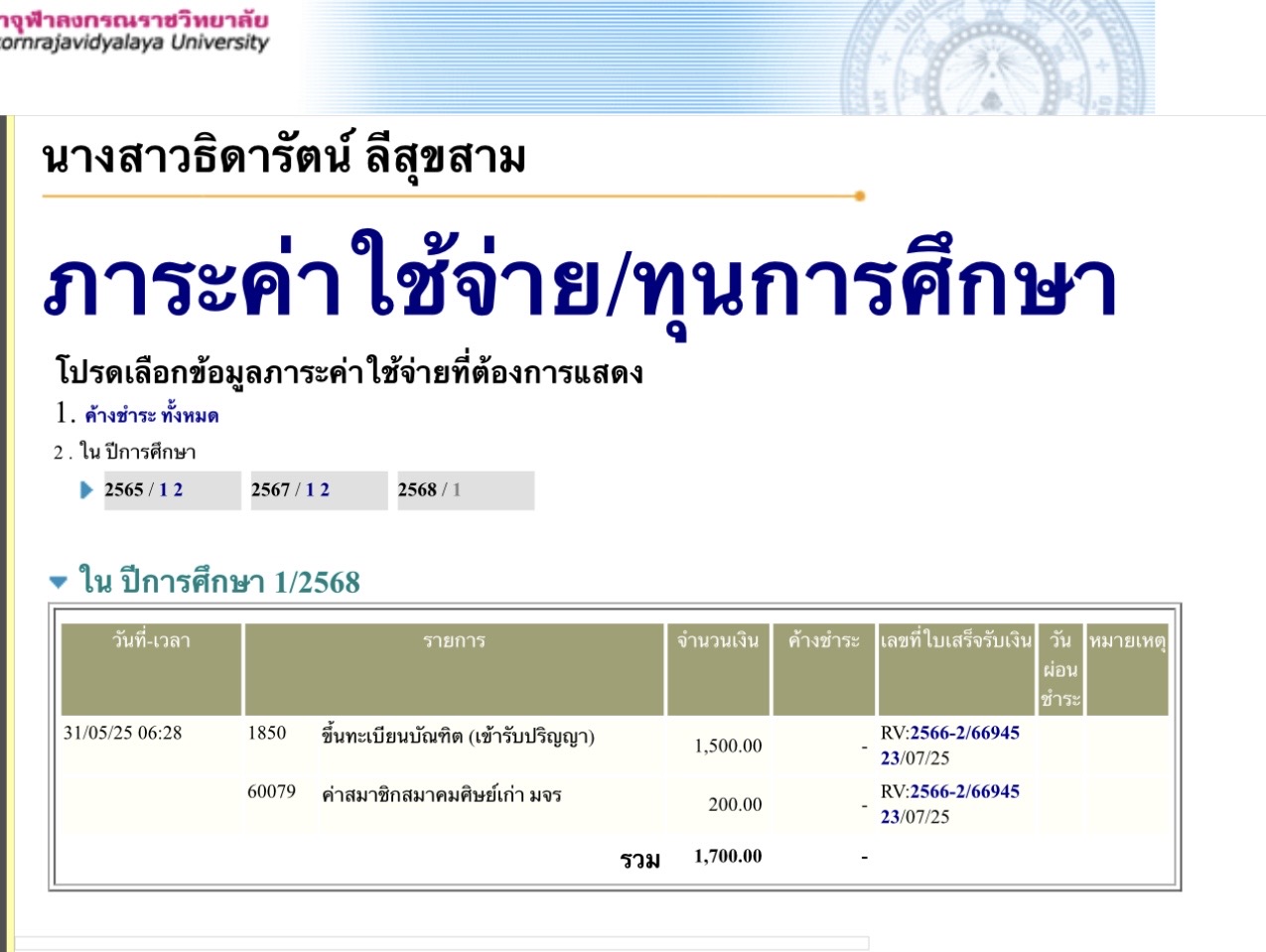 | สถานะเข้าพิธีประสาทปริญญา : คฤหัสถ์ | ระดับ : ปริญญาตรี | สังกัดคณะ: คณะสังคมศาสตร์ | สาขาวิชา: รัฐประศาสนศาสตรบัณฑิต |