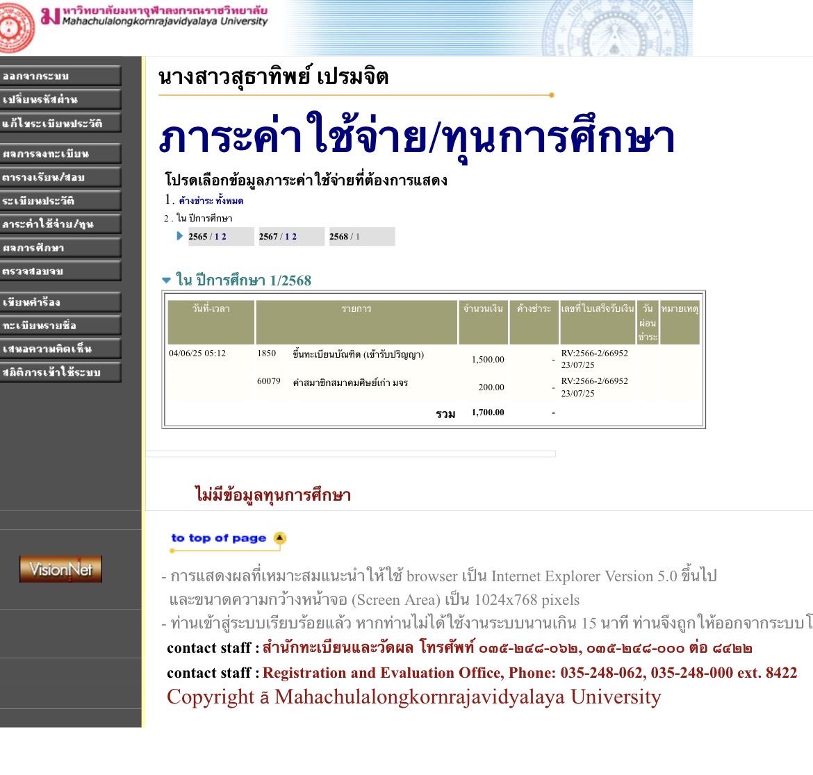สถานะเข้าพิธีประสาทปริญญา : คฤหัสถ์ ระดับ : ปริญญาตรี สังกัดคณะ: คณะสังคมศาสตร์ สาขาวิชา: รัฐประศาสนศาสตรบัณฑิต