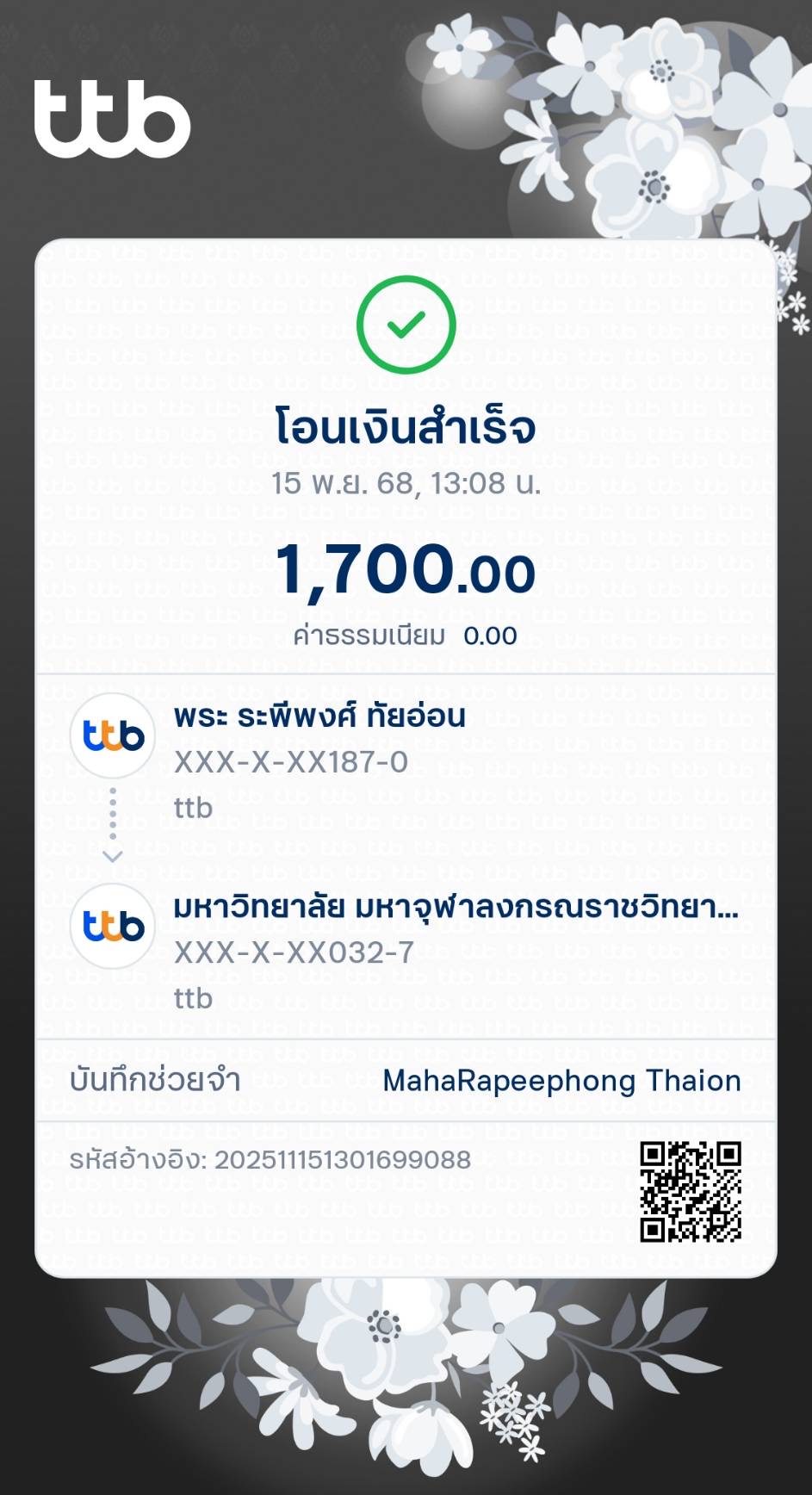 * เข้าพิธีประสาทปริญญาวันที่ 6 ธันวาคม 2568