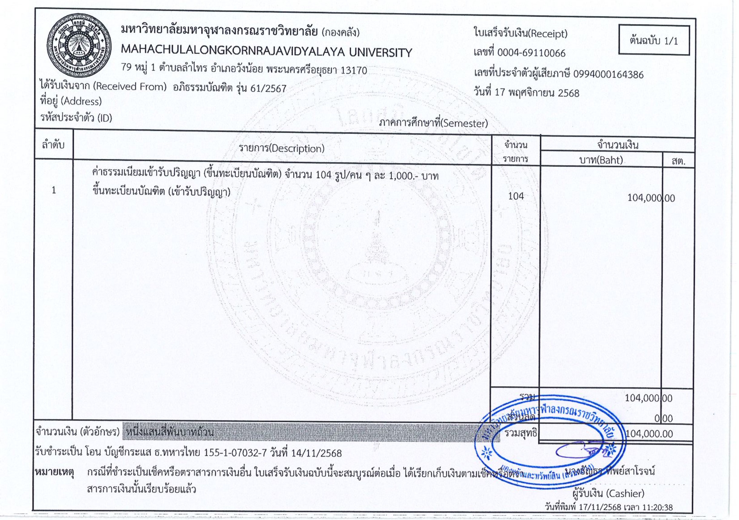 | สถานะเข้าพิธีประสาทปริญญา : คฤหัสถ์ | ระดับ : ประกาศนียบัตร | สังกัดคณะ: อภิธรรมโชติกะวิทยาลัย | สาขาวิชา: ประกาศนียบัตรอภิธรรมบัณฑิต |