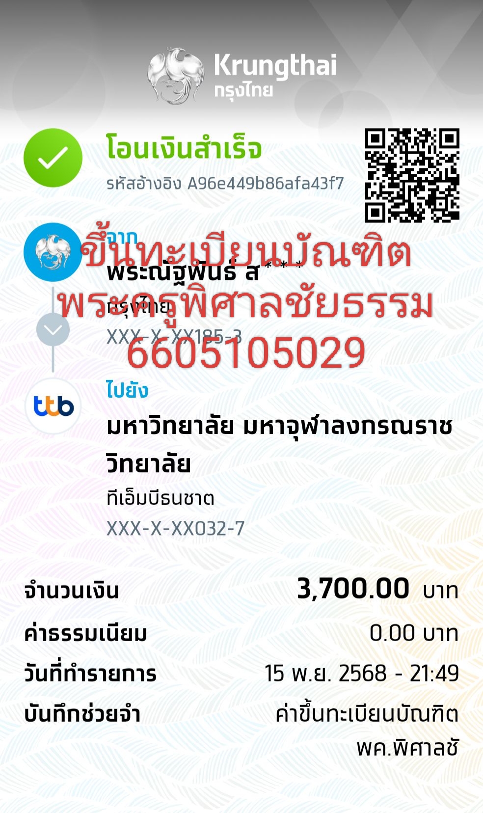 * เข้าพิธีประสาทปริญญาวันที่ 7 ธันวาคม 2568