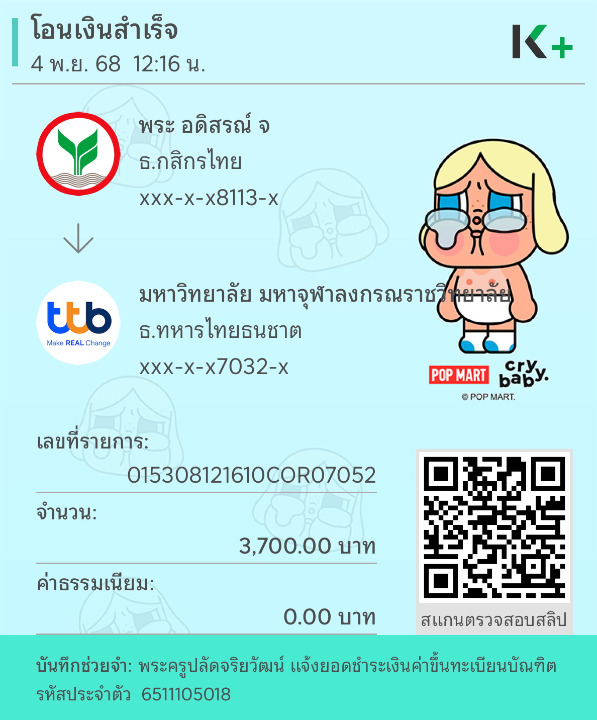 QR Code สำหรับสแกนเข้าร่วมพิธี * เข้าพิธีประสาทปริญญาวันที่ 7 ธันวาคม 2568 |