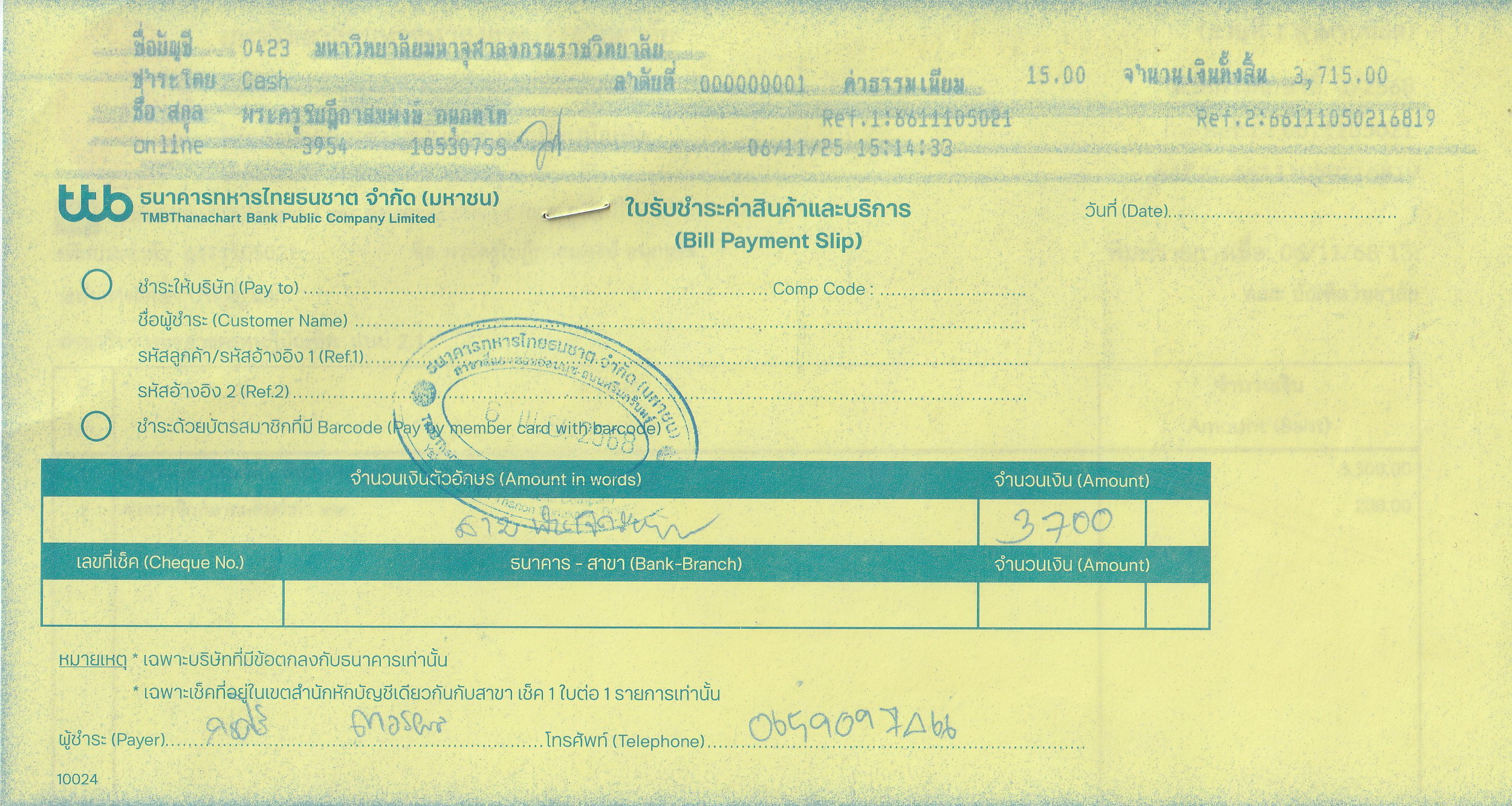 ใบเสร็จรับเงิน/เอกสารยืนยันการชำระเงิน(แนบเอกสาร)