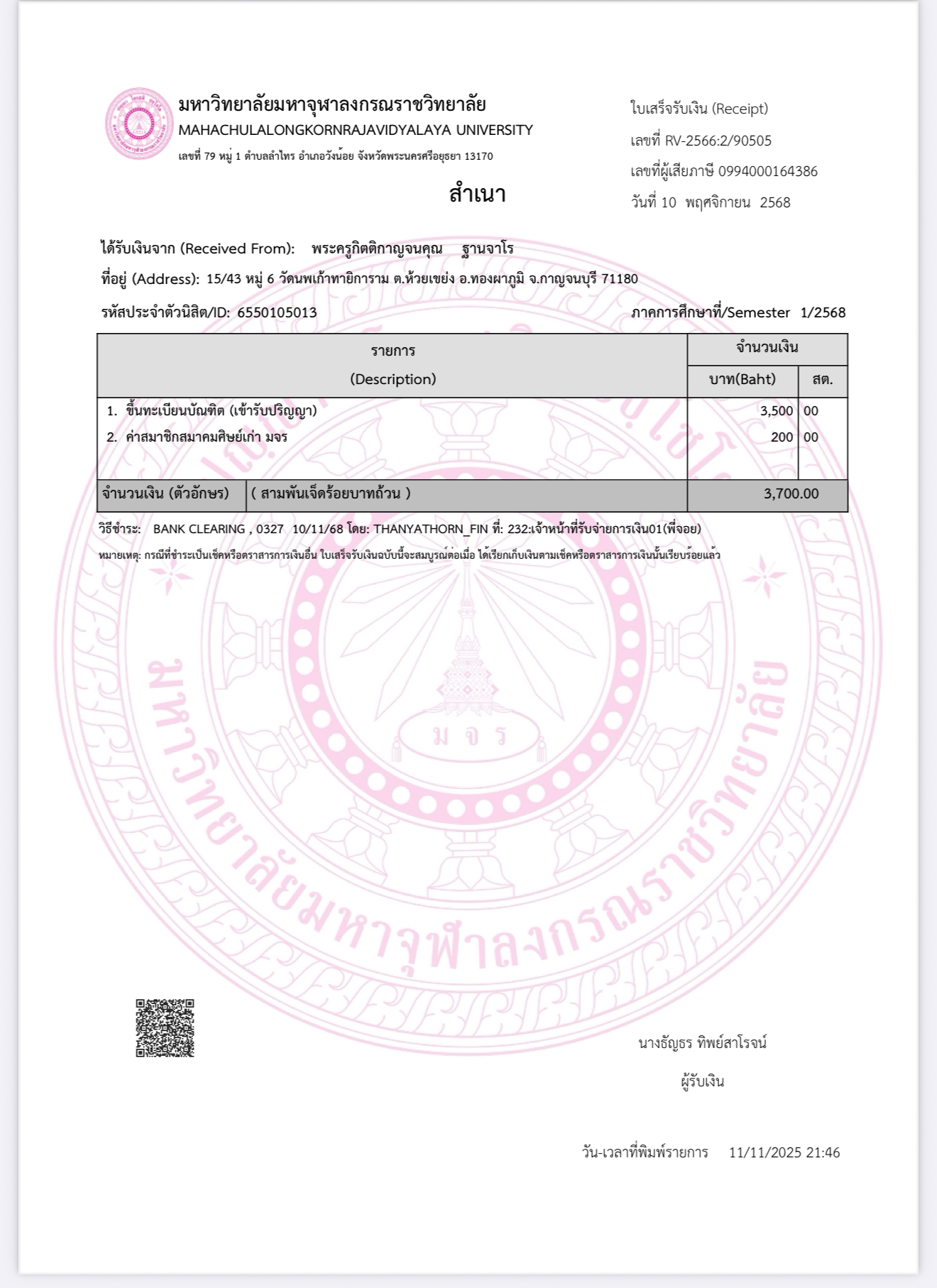 QR Code สำหรับสแกนเข้าร่วมพิธี * เข้าพิธีประสาทปริญญาวันที่ 7 ธันวาคม 2568 |