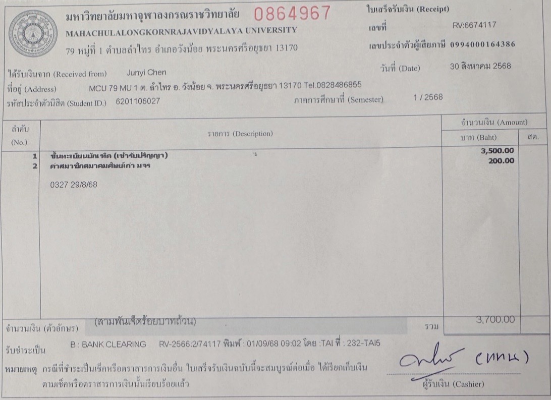 | รหัสนิสิต : 6201106027 | ชื่อ : Junyi Chen | ฉายา: - | นามสกุล: - |