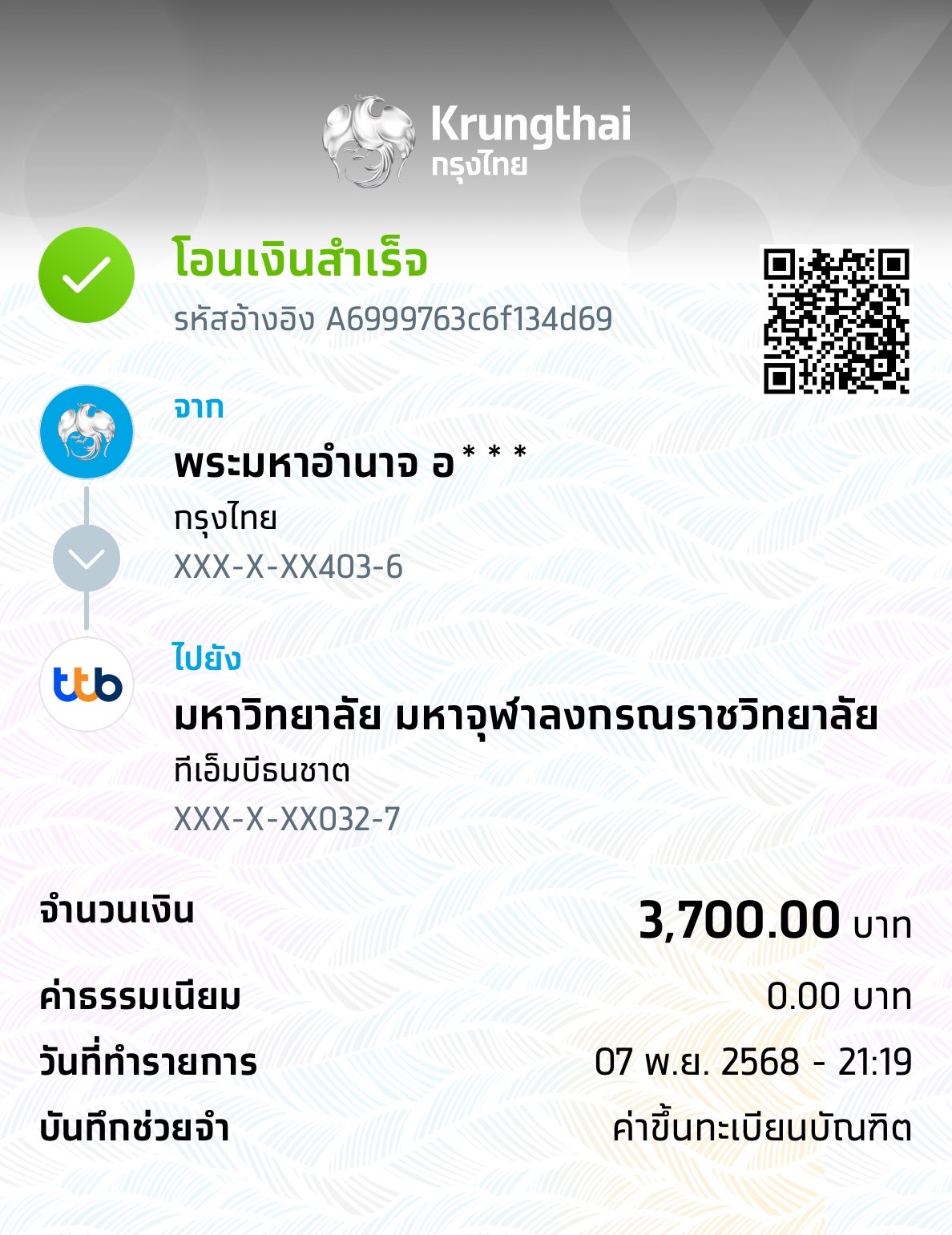 QR Code สำหรับสแกนเข้าร่วมพิธี * เข้าพิธีประสาทปริญญาวันที่ 7 ธันวาคม 2568 |