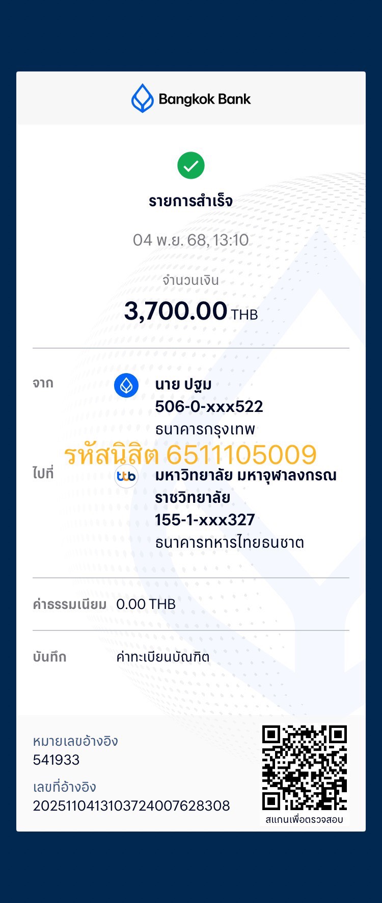 QR Code สำหรับสแกนเข้าร่วมพิธี * เข้าพิธีประสาทปริญญาวันที่ 7 ธันวาคม 2568 |
