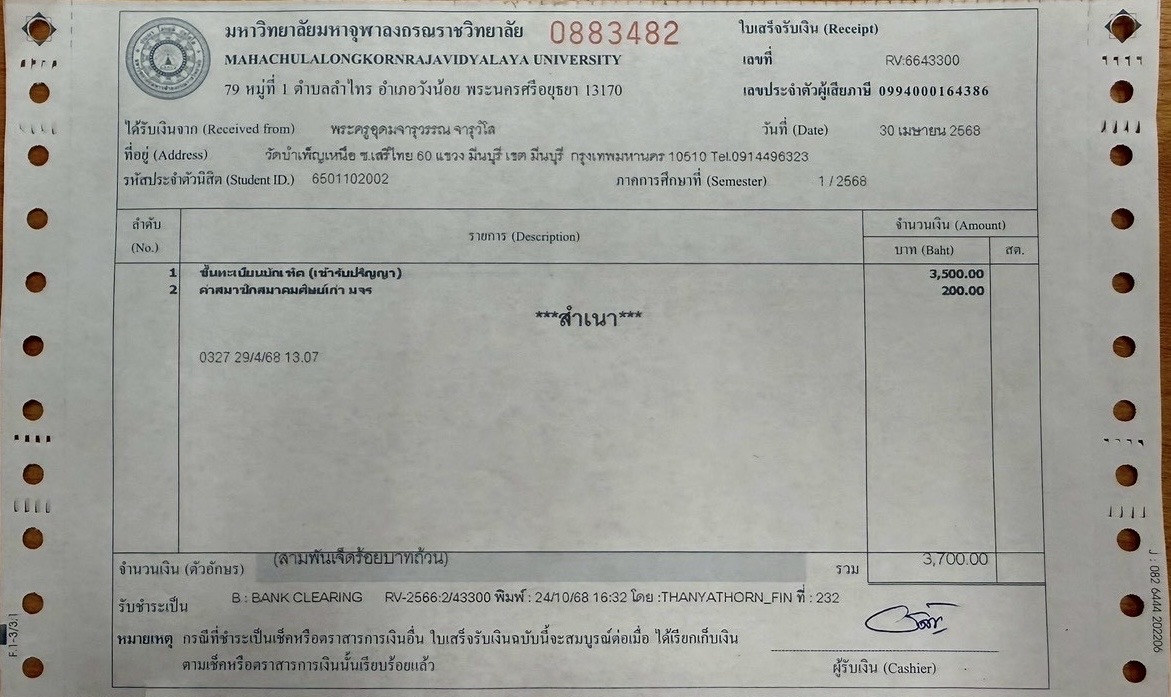 | สถานะเข้าพิธีประสาทปริญญา : บรรพชิต | ระดับ : ปริญญาเอก | สังกัดคณะ: บัณฑิตวิทยาลัย | สาขาวิชา: พุทธบริหารการศึกษา |