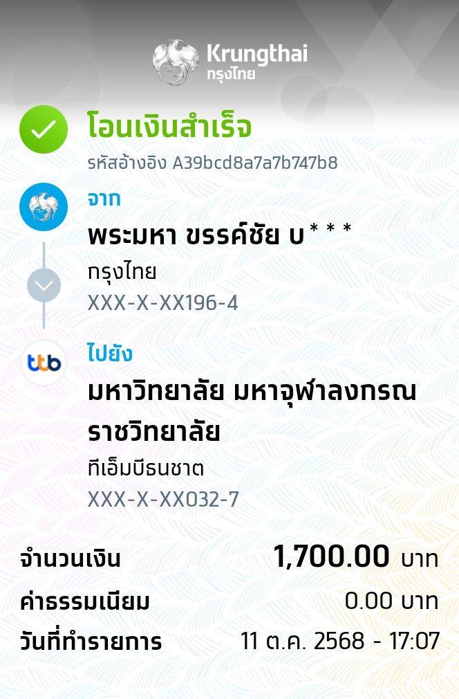 * เข้าพิธีประสาทปริญญาวันที่ 6 ธันวาคม 2568