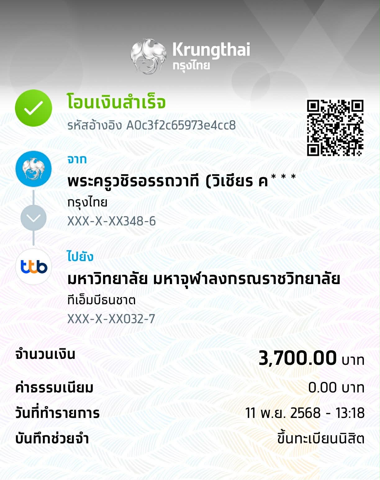 QR Code สำหรับสแกนเข้าร่วมพิธี * เข้าพิธีประสาทปริญญาวันที่ 7 ธันวาคม 2568 |