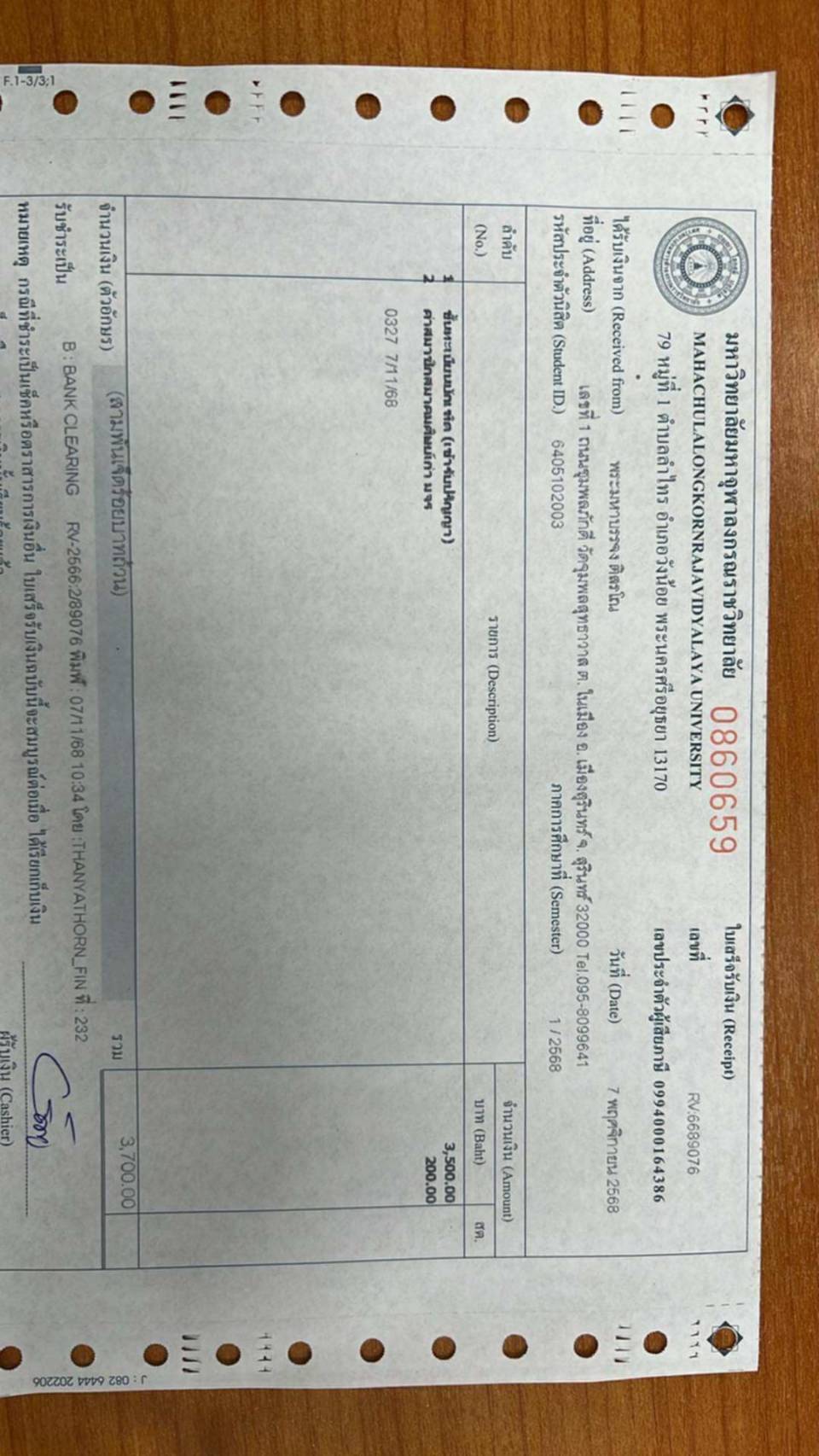 | รหัสนิสิต : 6405102003 | ชื่อ : พระมหาบรรจง | ฉายา: ติสรโณ | นามสกุล: ศรีสุข |