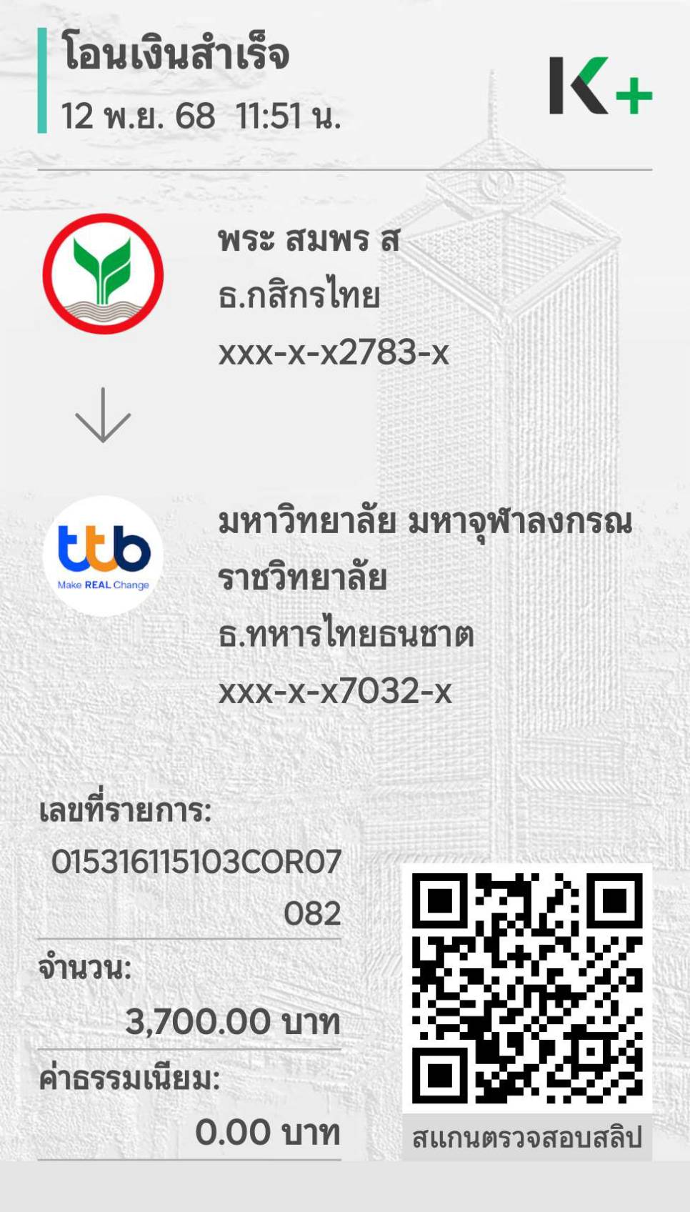 QR Code สำหรับสแกนเข้าร่วมพิธี * เข้าพิธีประสาทปริญญาวันที่ 7 ธันวาคม 2568 |