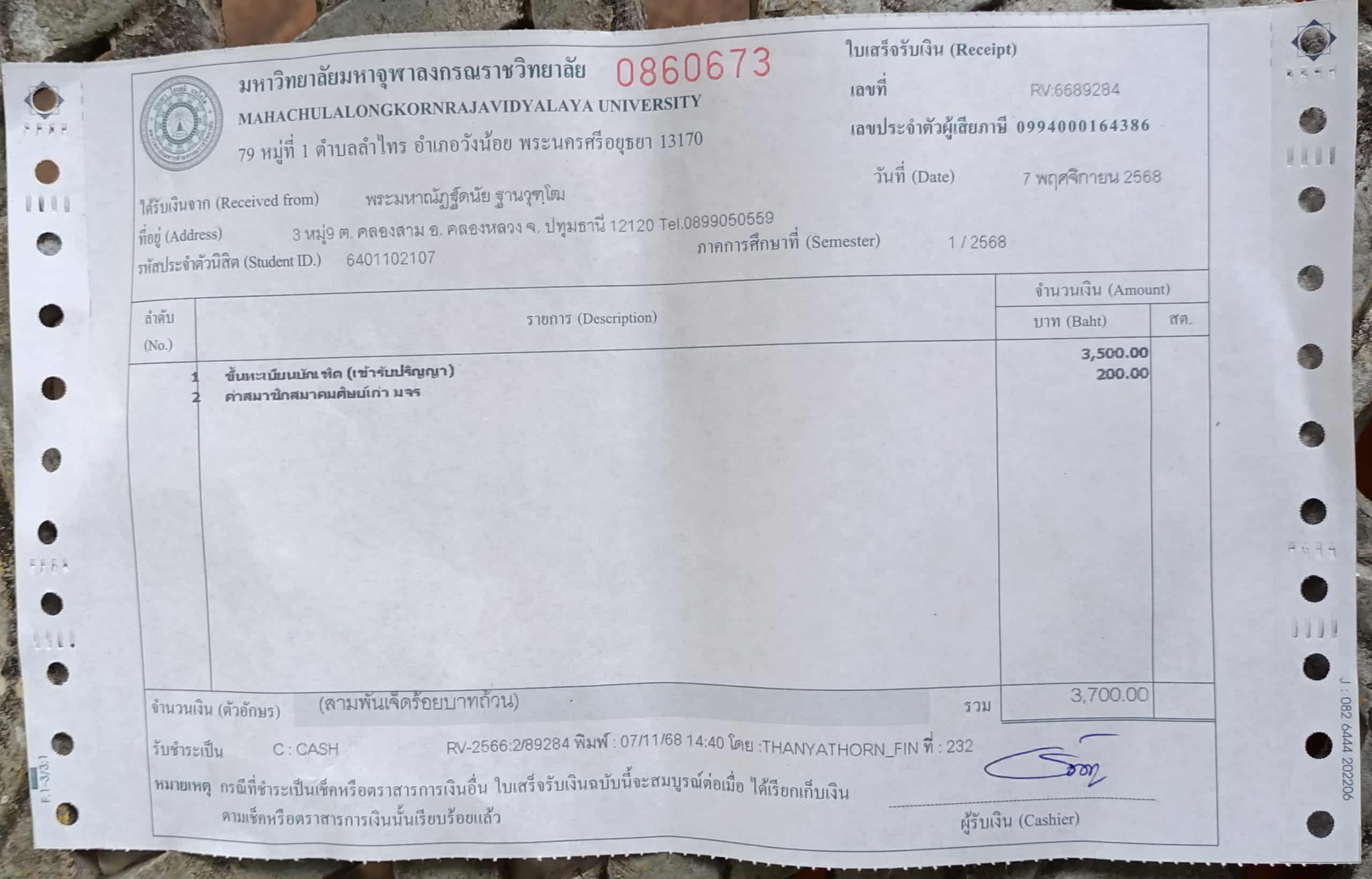| รหัสนิสิต : 6401102107 | ชื่อ : พระมหาณัฏฐ์ดนัย | ฉายา: ฐานวุฑฺโฒ | นามสกุล: เนียมหอม |