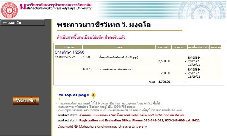 | สถานะเข้าพิธีประสาทปริญญา : บรรพชิต | ระดับ : ปริญญาเอก | สังกัดคณะ: บัณฑิตวิทยาลัย | สาขาวิชา: พุทธจิตวิทยา |