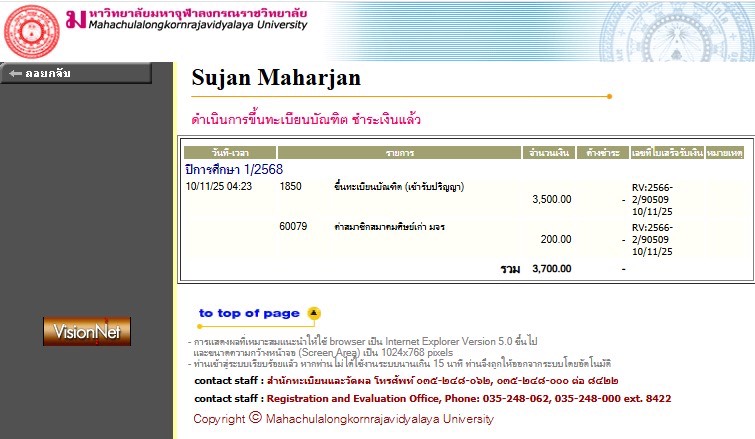 | รหัสนิสิต : 6401103035 | ชื่อ : Sujan | ฉายา: - | นามสกุล: Maharjan |