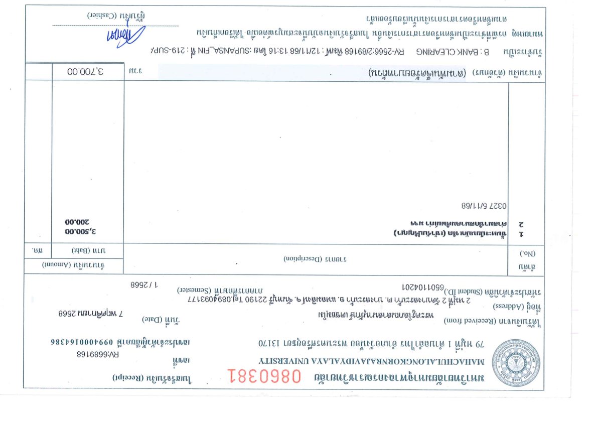 ใบเสร็จรับเงิน/เอกสารยืนยันการชำระเงิน(แนบเอกสาร)