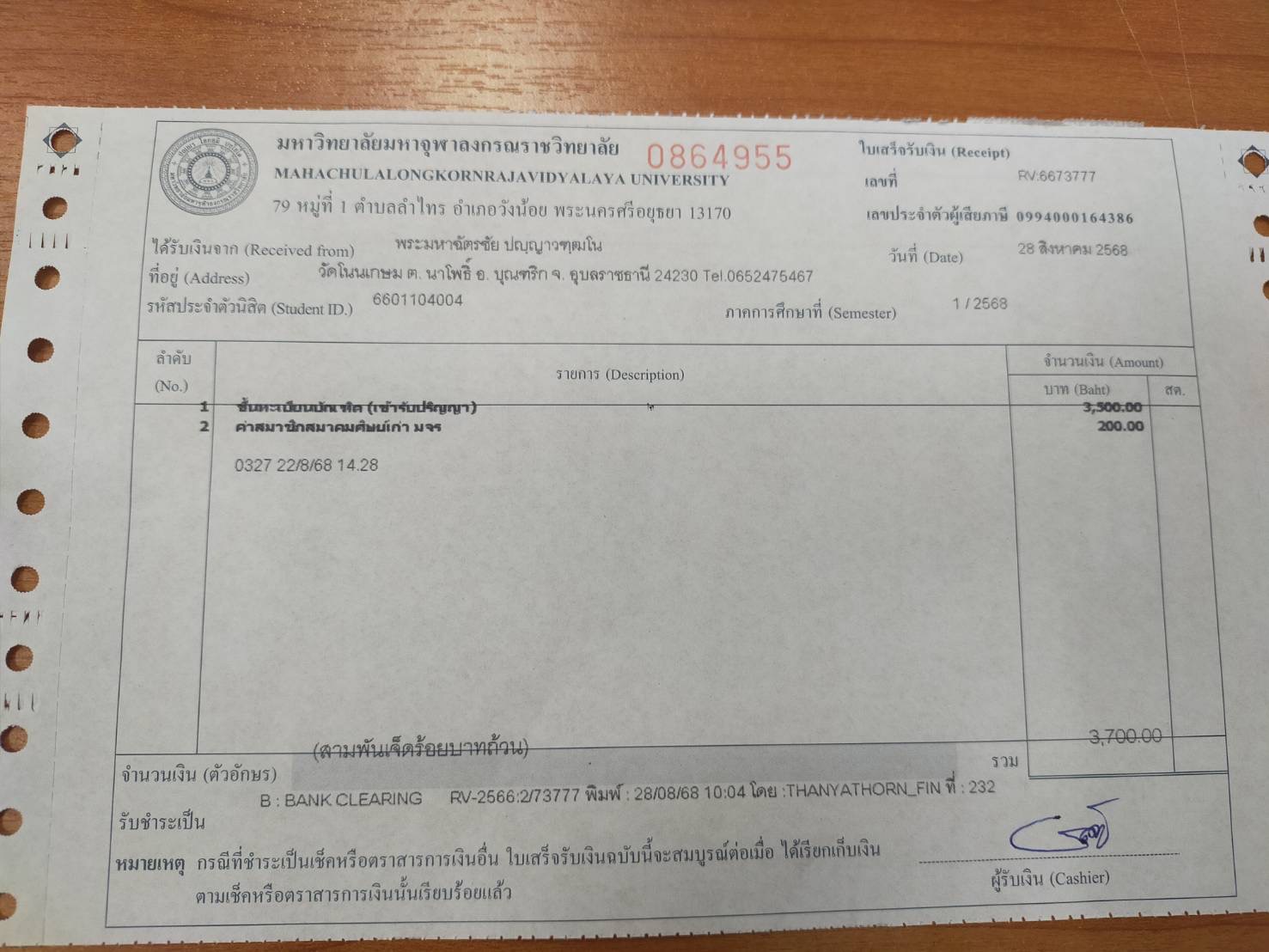 | รหัสนิสิต : 6601104004 | ชื่อ : พระมหาฉัตรชัย | ฉายา: ปญฺญาวฑฺฒโน | นามสกุล: พลศรี |