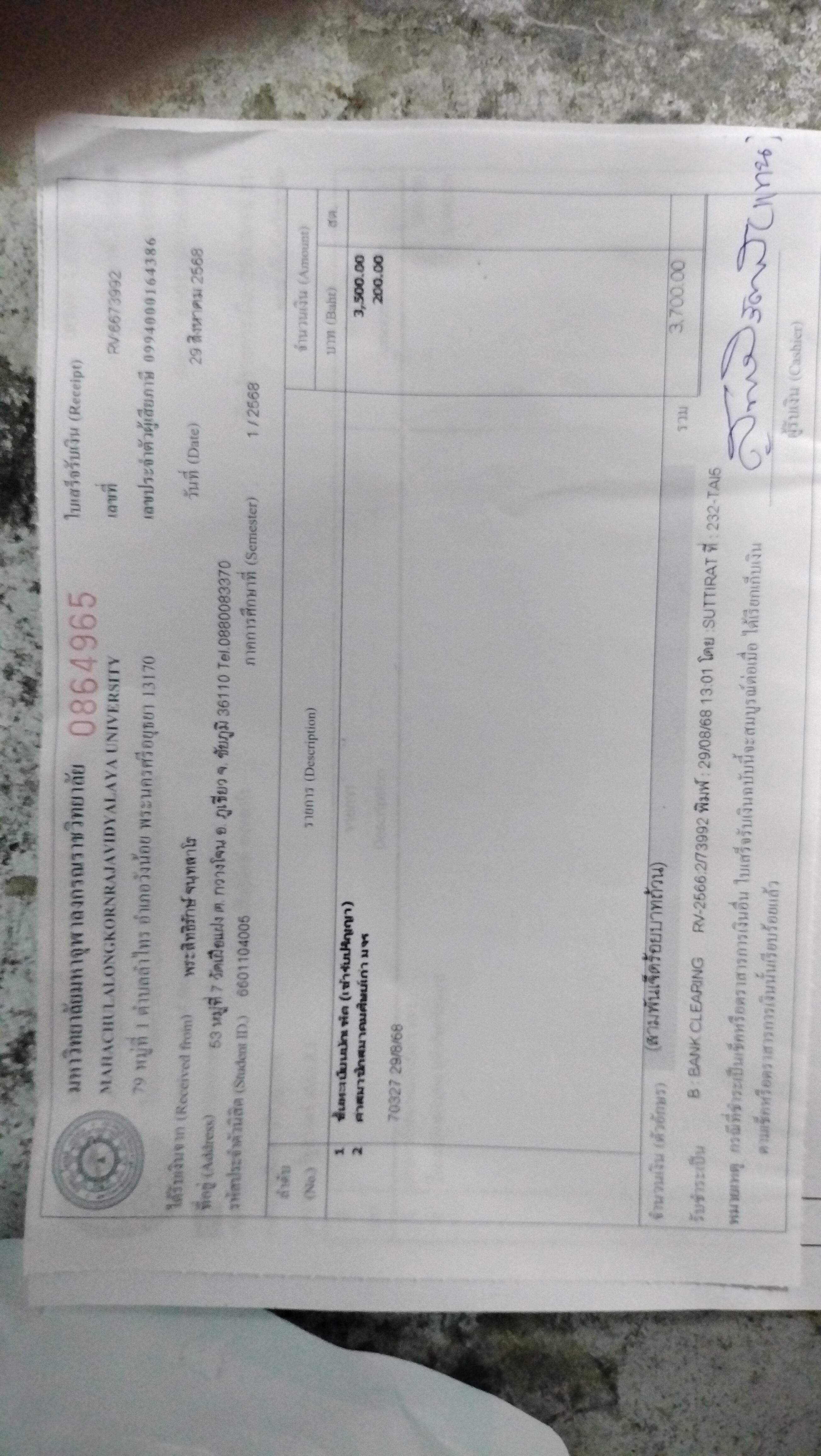 ใบเสร็จรับเงิน/เอกสารยืนยันการชำระเงิน(แนบเอกสาร)