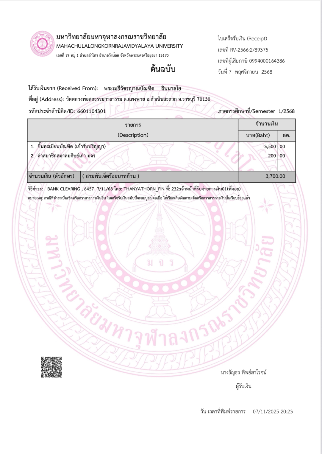 QR Code สำหรับสแกนเข้าร่วมพิธี * เข้าพิธีประสาทปริญญาวันที่ 7 ธันวาคม 2568 |