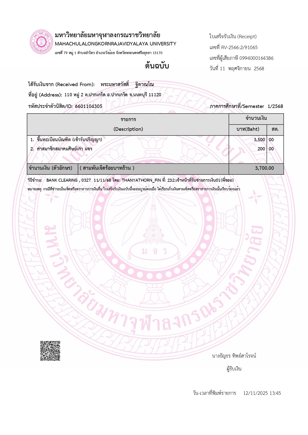 QR Code สำหรับสแกนเข้าร่วมพิธี * เข้าพิธีประสาทปริญญาวันที่ 7 ธันวาคม 2568 |