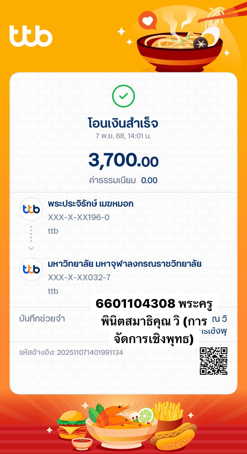 | รหัสนิสิต : 6601104308 | ชื่อ : พระครูพินิตสมาธิคุณ | ฉายา: ยุตฺติโก | นามสกุล: จุลปาน |