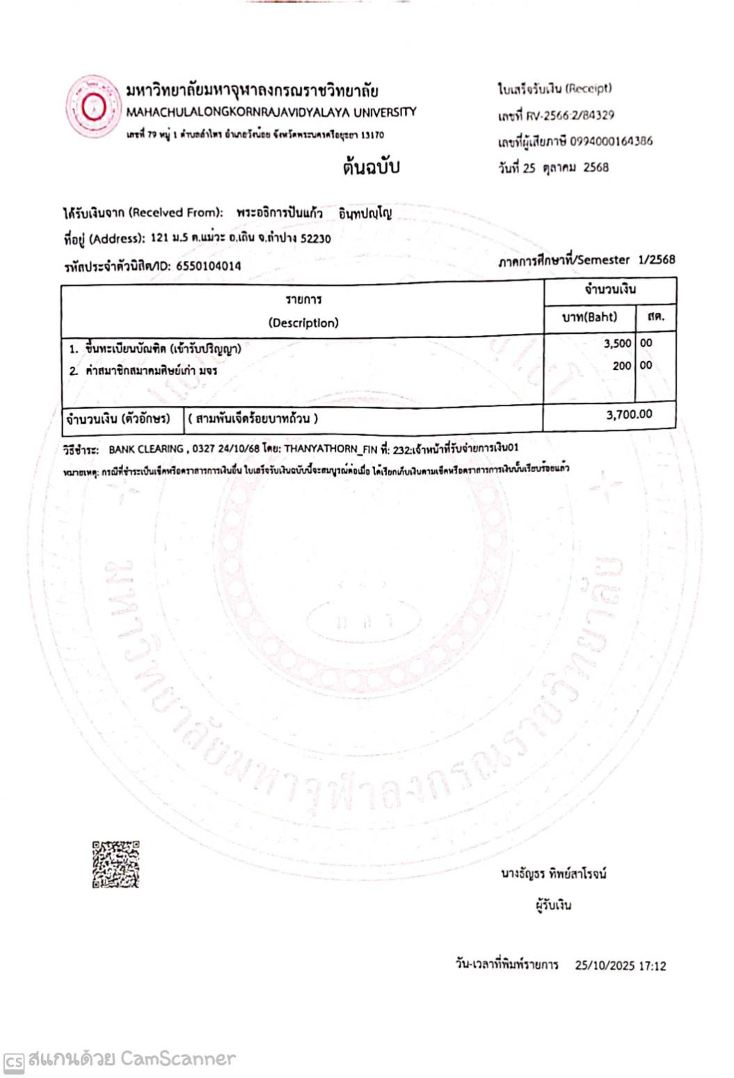 QR Code สำหรับสแกนเข้าร่วมพิธี * เข้าพิธีประสาทปริญญาวันที่ 7 ธันวาคม 2568 |