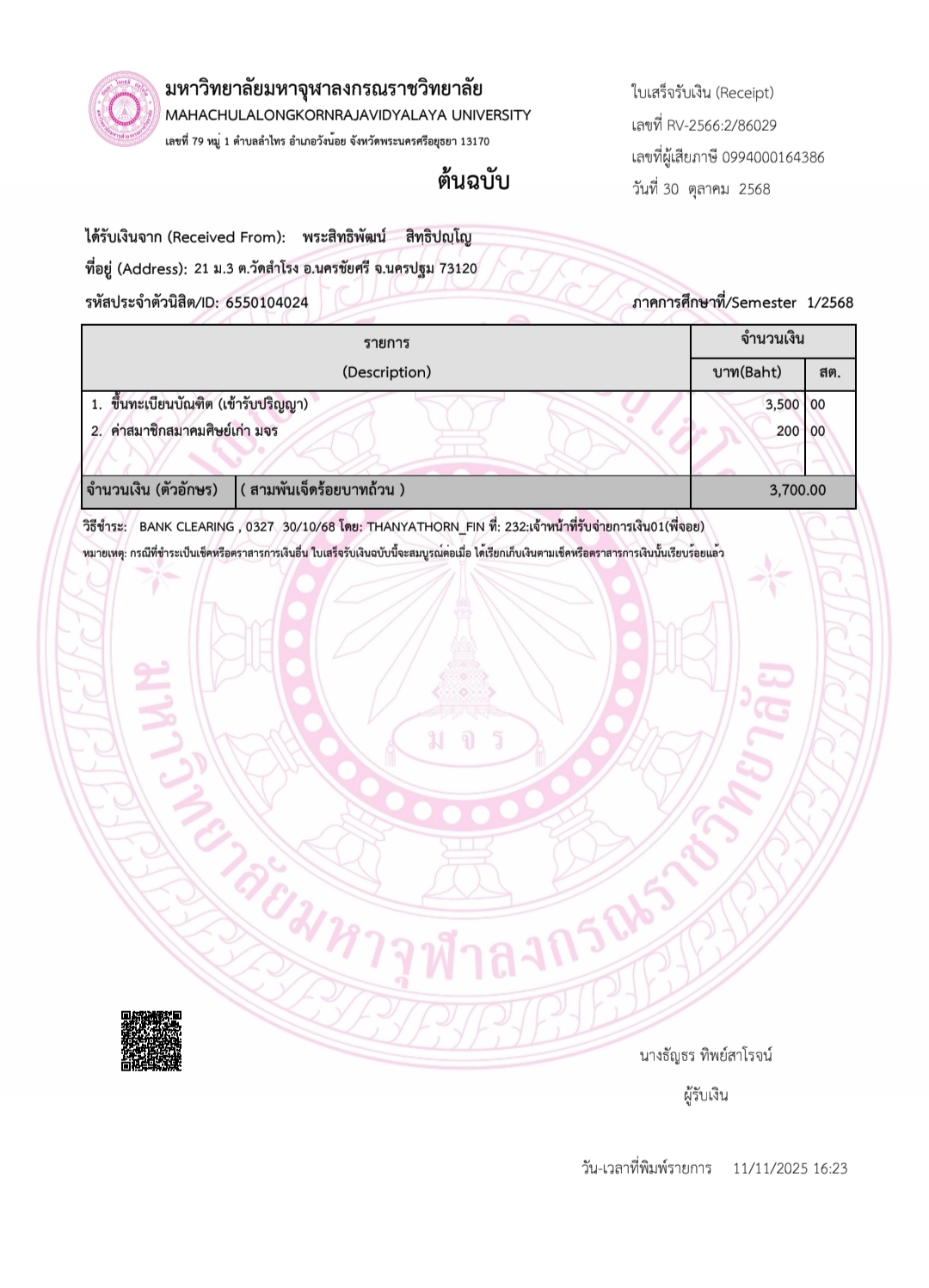 * เข้าพิธีประสาทปริญญาวันที่ 7 ธันวาคม 2568