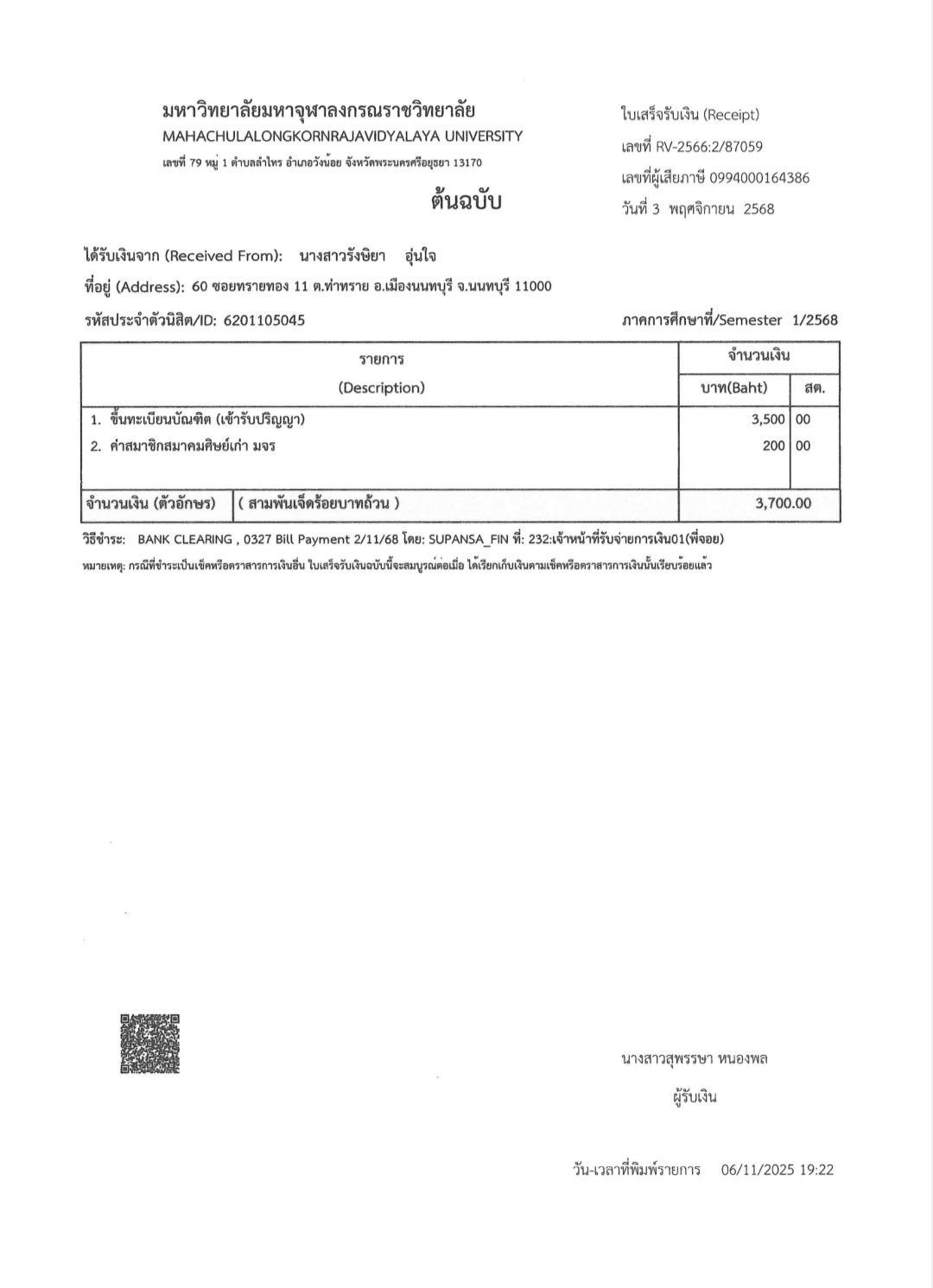 QR Code สำหรับสแกนเข้าร่วมพิธี * เข้าพิธีประสาทปริญญาวันที่ 7 ธันวาคม 2568 |