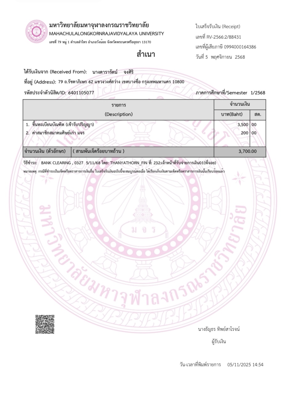 ใบเสร็จรับเงิน/เอกสารยืนยันการชำระเงิน(แนบเอกสาร)