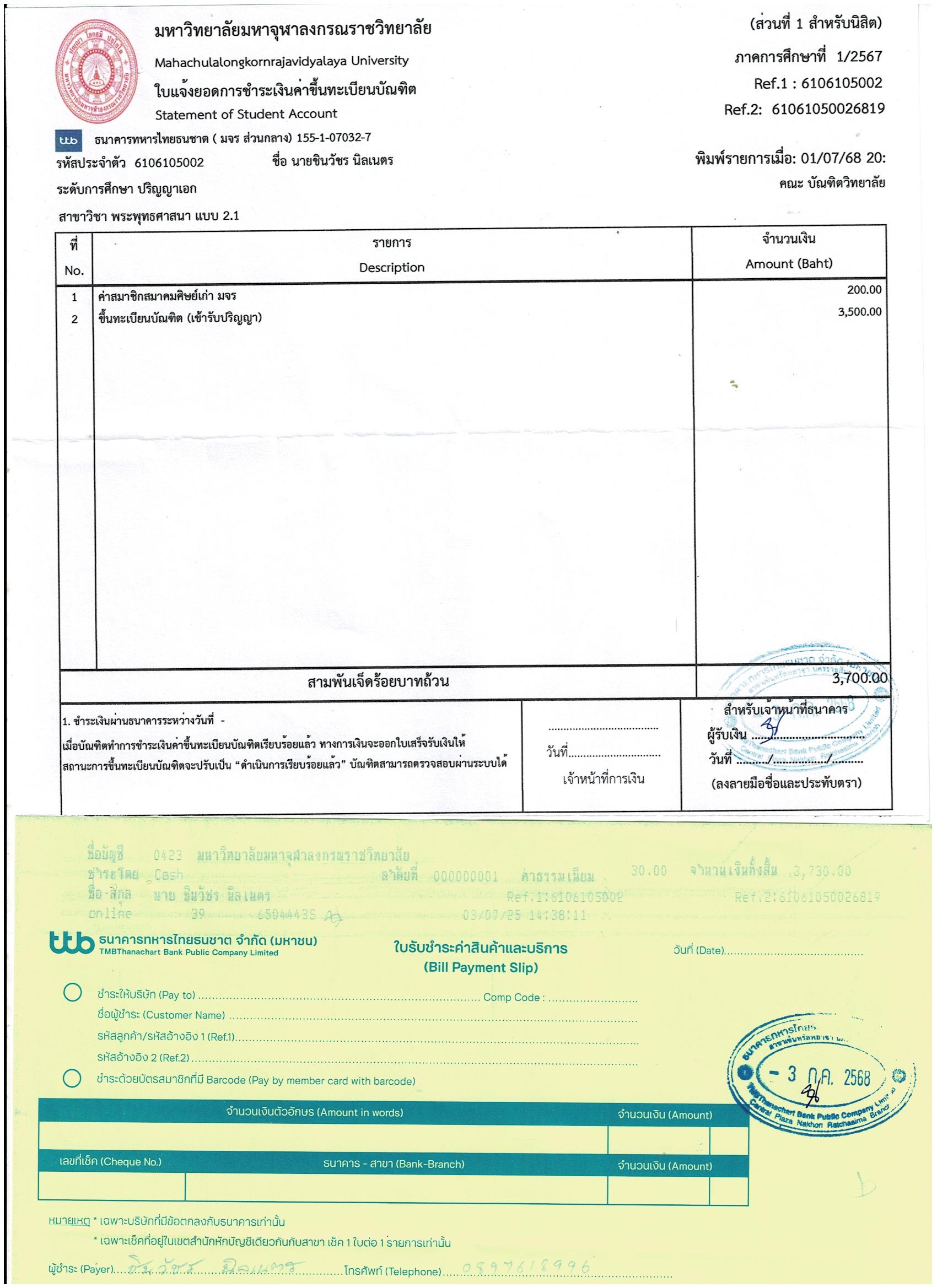 | รหัสนิสิต : 6106105002 | ชื่อ : นายชินวัชร | ฉายา: - | นามสกุล: นิลเนตร |