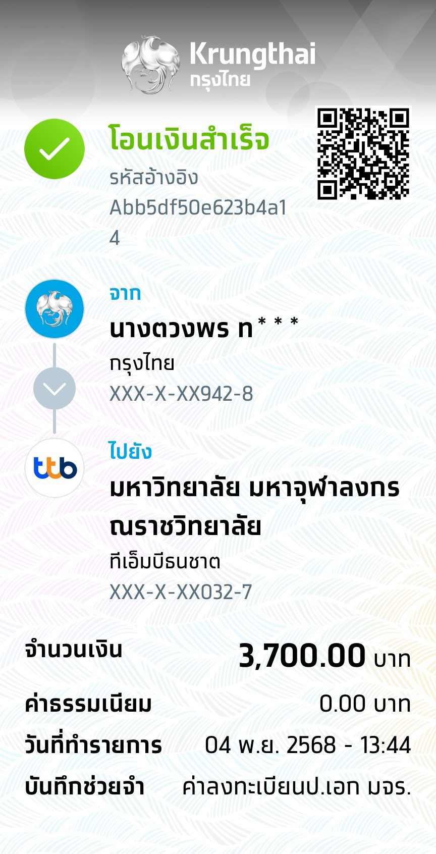 QR Code สำหรับสแกนเข้าร่วมพิธี * เข้าพิธีประสาทปริญญาวันที่ 7 ธันวาคม 2568 |