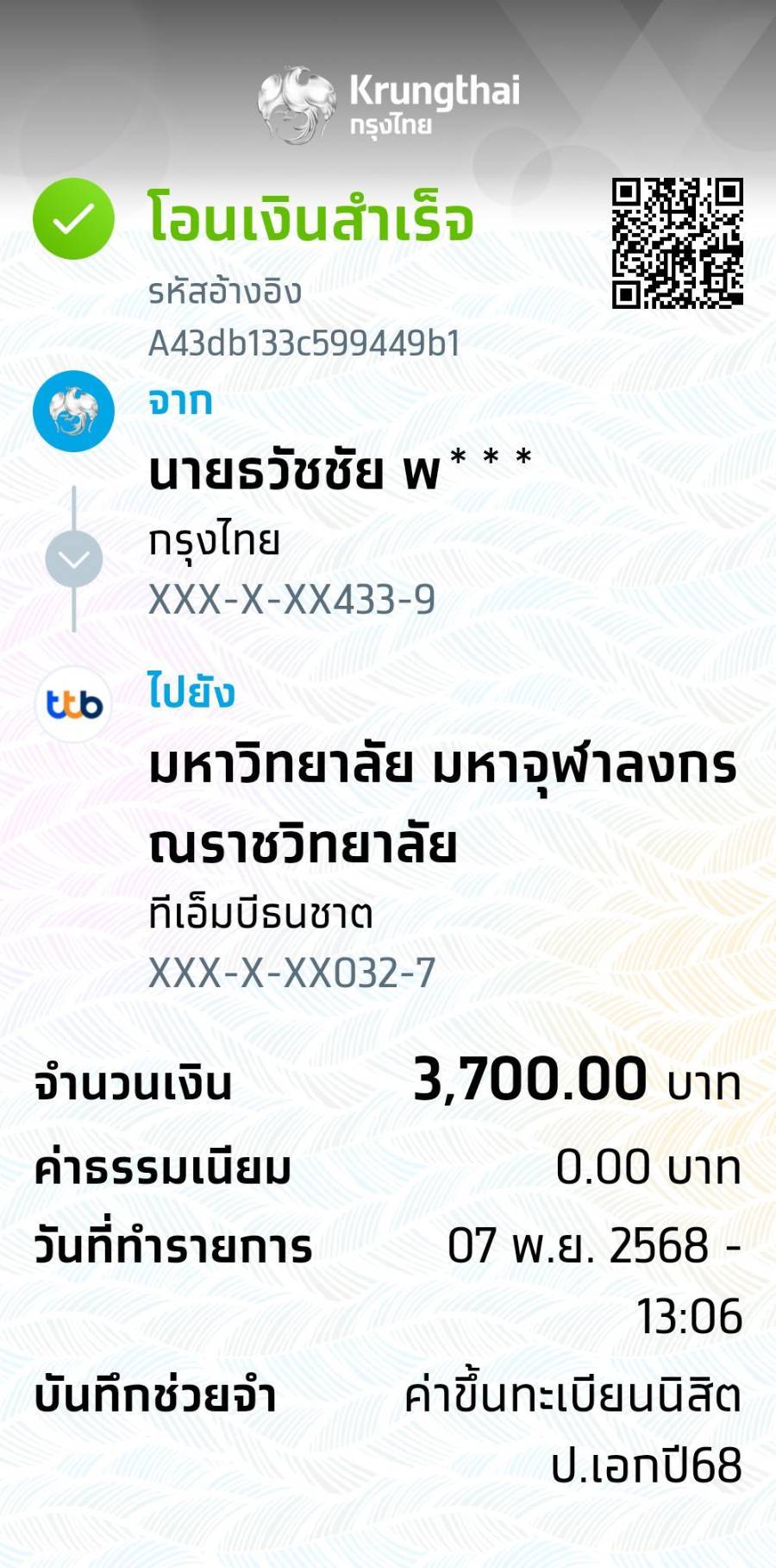 QR Code สำหรับสแกนเข้าร่วมพิธี * เข้าพิธีประสาทปริญญาวันที่ 7 ธันวาคม 2568 |