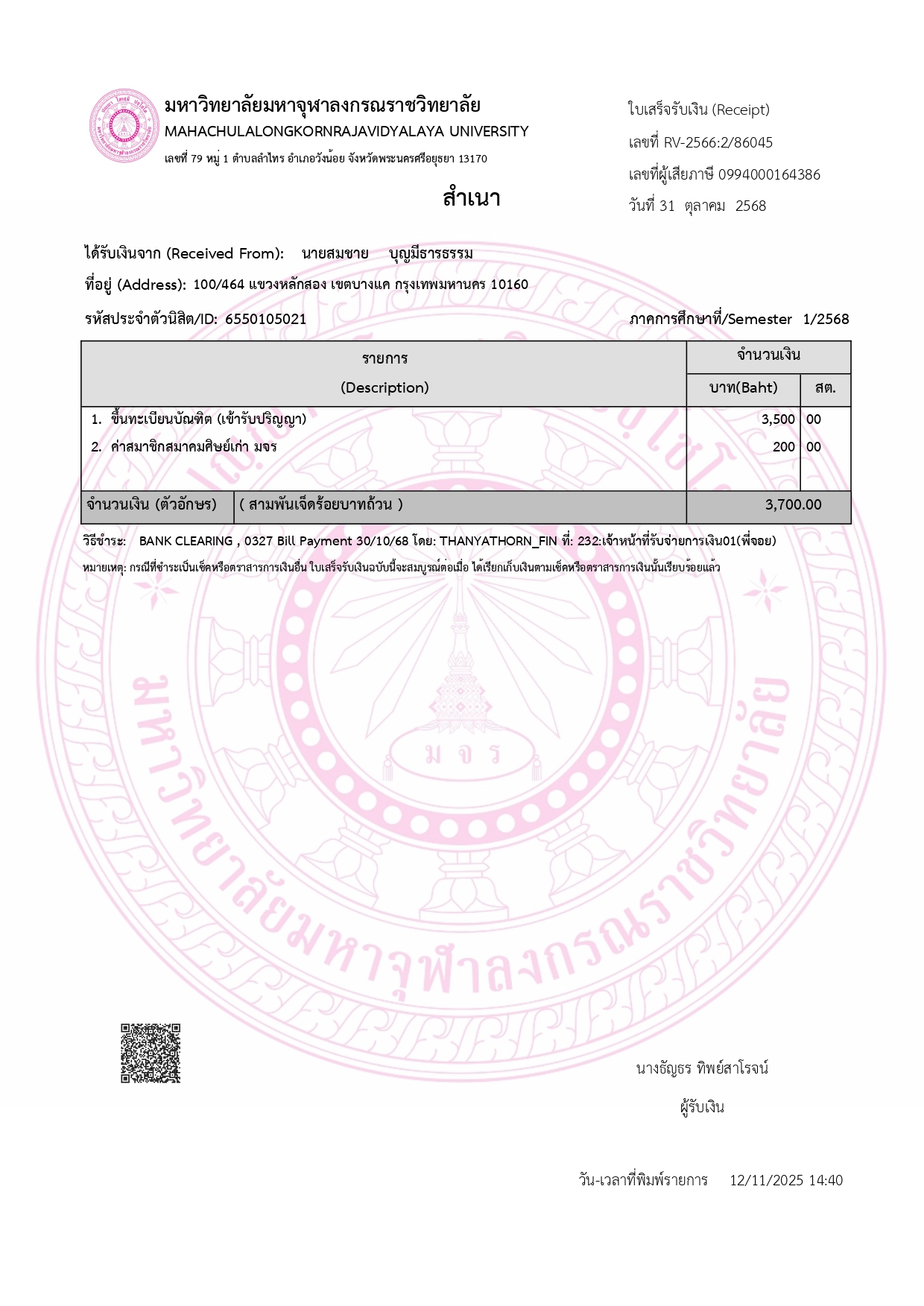 QR Code สำหรับสแกนเข้าร่วมพิธี * เข้าพิธีประสาทปริญญาวันที่ 7 ธันวาคม 2568 |